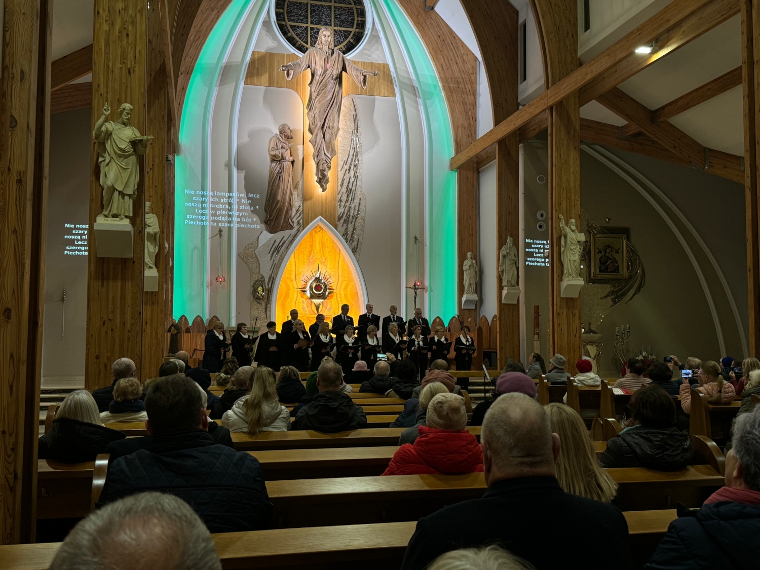 Dnia 17 listopada 2025 roku, w 25 roku istnienia wspólnoty parafialnej, przeżywaliśmy koncert pieśni patriotyczych w wykonaniu Gdańskiego Chóru Nauczycielskiego. Wydarzenie zgromadziło parafian, którzy w duchu modlitwy za Ojczyznę pragnęli także wysłuchać znanych pieśni patriotycznych. Przeżywany kilka dni wcześniej Dzień Niepodległości oraz listopad – miesiąc pamięci o zmarłch, stały się okazją do wspólnego spotkania i modlitwy również za tych, którzy złożyli swoje życie na ołtarzu Ojczyzny.