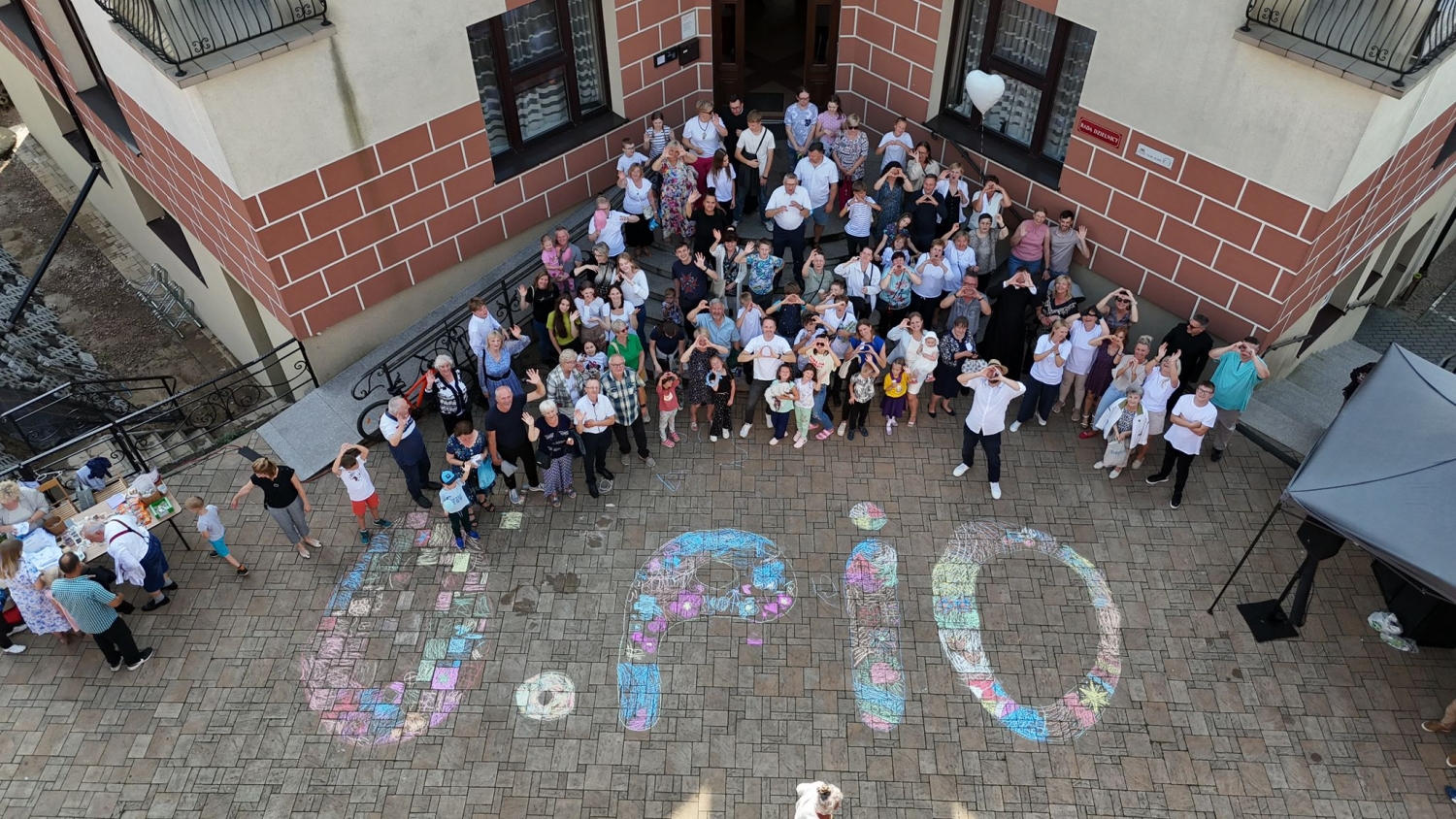Wokół kościoła i domu parafialnego rozstawiono liczne stoiska i atrakcje. Była jubileuszowa zupa tajska i bigos, ciasta wypiekane przez parafianki, wata cukrowa, popcorn, lody i gofry z parafialnego foodtrucka. Dzieci szalały na dmuchańcach i torach przeszkód, starsi próbowali swoich sił w konkursach i quizach. Wodzirej Szczepan Babiuch i didżej Jakub Hinz rozkręcili imprezę – prowadzili tańce, śpiewy i gry zespołowe. Na stoisku z pamiątkami można było kupić m.in. koszulki z logiem parafii i specjalne jubileuszowe magnesy.