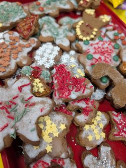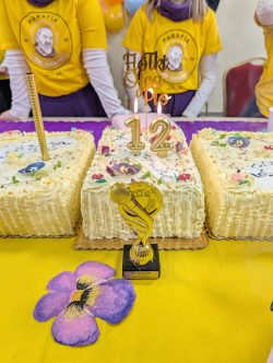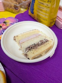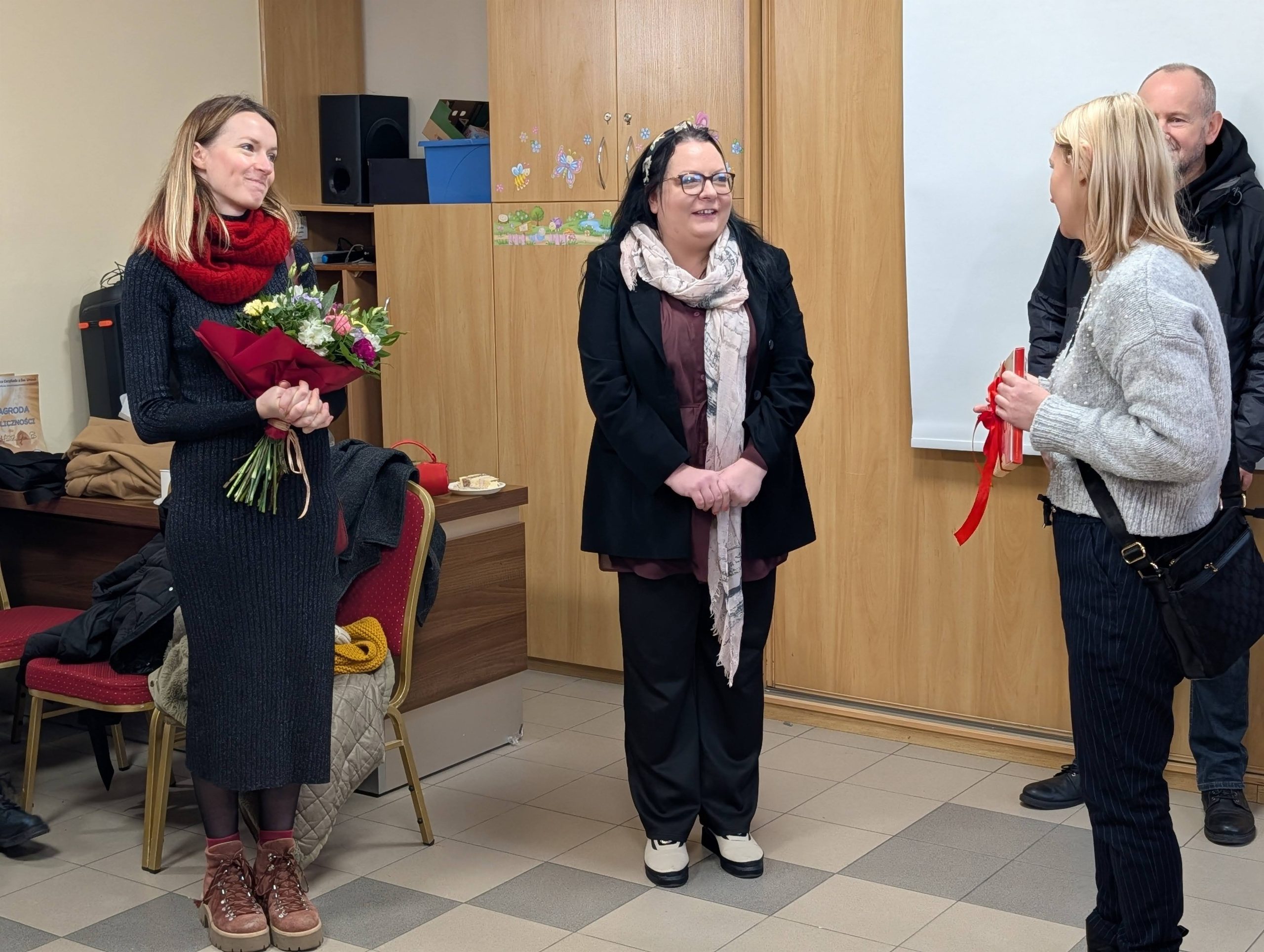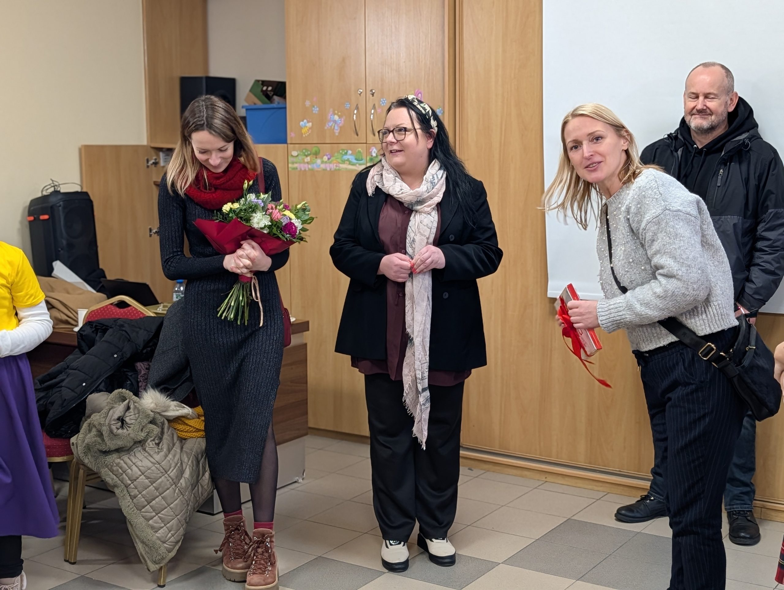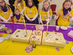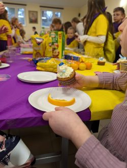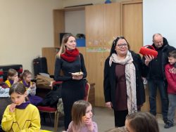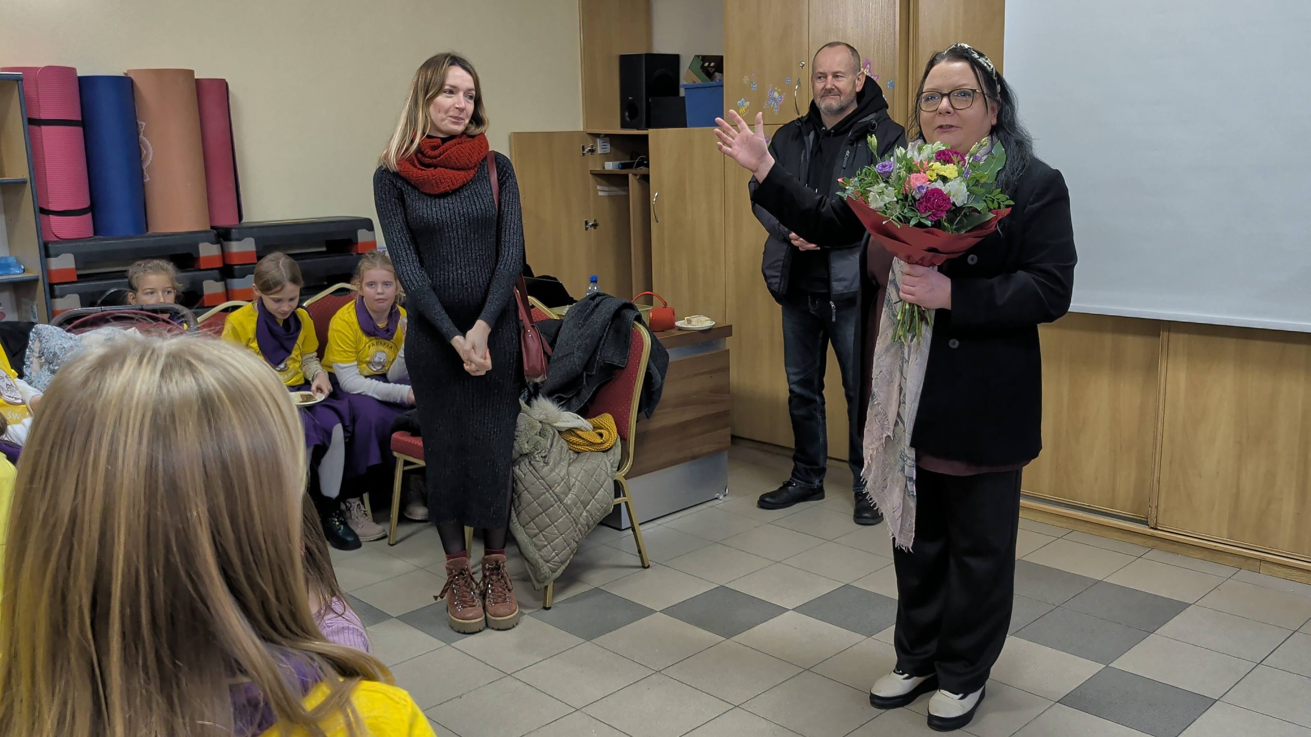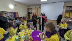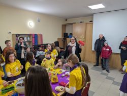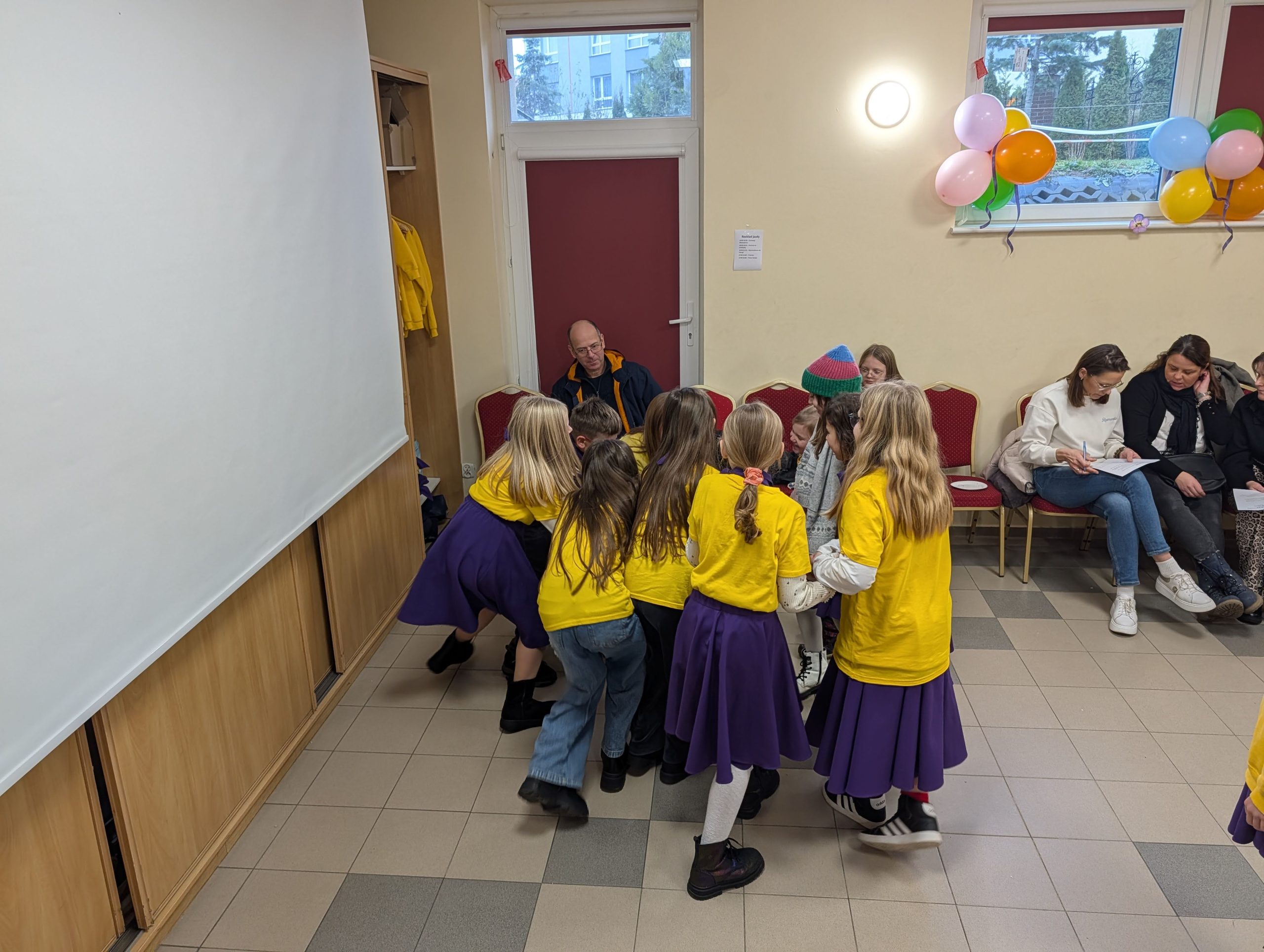 Po Mszy w domu parafialnym zgromadziliśmy się na prawdziwe świętowanie — był ogromny tort, radosne rozmowy, mnóstwo uśmiechów, a także wspomnienia uchwycone na ekranie: film o działalności Fiołków w ostatnich latach przywrócił wiele pięknych chwil i pokazał, ile dobra i zaangażowania kryje się w tej dziecięco-młodzieżowej wspólnocie.