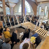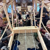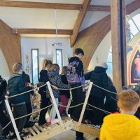 Już od pierwszego spotkania dzieci zobaczyły coś niezwykłego. Członkowie wspólnoty własnoręcznie zbudowali wielki most, który stanął w kościele. Ten most nie był tylko dekoracją. Stał się symbolem całych rekolekcji i obrazem drogi, którą każdy człowiek może przejść, aby zbliżyć się do Boga. Most łączy dwa brzegi. Pomaga przejść nad tym, co trudne, niebezpieczne albo nie do pokonania. Podobnie jest w naszym życiu duchowym. Czasem wydaje się, że między nami a Bogiem jest wielka przepaść – nasze błędy, słabości, lęki czy grzech. Rekolekcje przypominały jednak bardzo ważną prawdę: Bóg sam buduje most, który prowadzi do Niego. Tym mostem jest przede wszystkim Jezus Chrystus. To On przyszedł na świat, aby połączyć niebo z ziemią i pokazać nam drogę do Ojca.