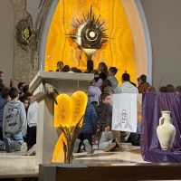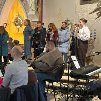 Ważnym momentem rekolekcji była także adoracja Najświętszego Sakramentu. Po dynamicznych scenkach i wspólnej modlitwie przychodził czas ciszy i spotkania z Jezusem. Dzieci mogły podejść bardzo blisko Pana Jezusa obecnego w Najświętszym Sakramencie. Dla wielu z nich było to szczególne doświadczenie – chwila zatrzymania, modlitwy i osobistego spotkania z Bogiem. To właśnie wtedy most, o którym tyle mówiono podczas rekolekcji, stawał się czymś bardzo konkretnym. Dzieci mogły zobaczyć, że Bóg nie jest kimś dalekim, ale jest blisko – tak blisko, że można stanąć tuż przy Nim i z Nim porozmawiać.