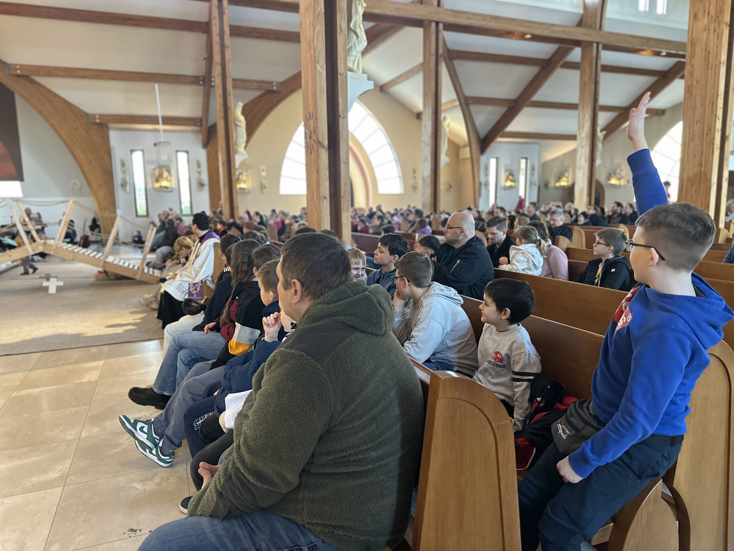 W ostatnich tygodniach w naszej parafii odbyły się rekolekcje wielkopostne dla dzieci. Spotkania trwały przez trzy kolejne piątki i były wyjątkowym czasem modlitwy, radości oraz odkrywania prawd wiary w sposób zrozumiały dla najmłodszych. Rekolekcje poprowadził ks. Wojtek wraz ze Wspólnotą „Betlejem”. Tematem tegorocznych rekolekcji był „Most do Boga”.