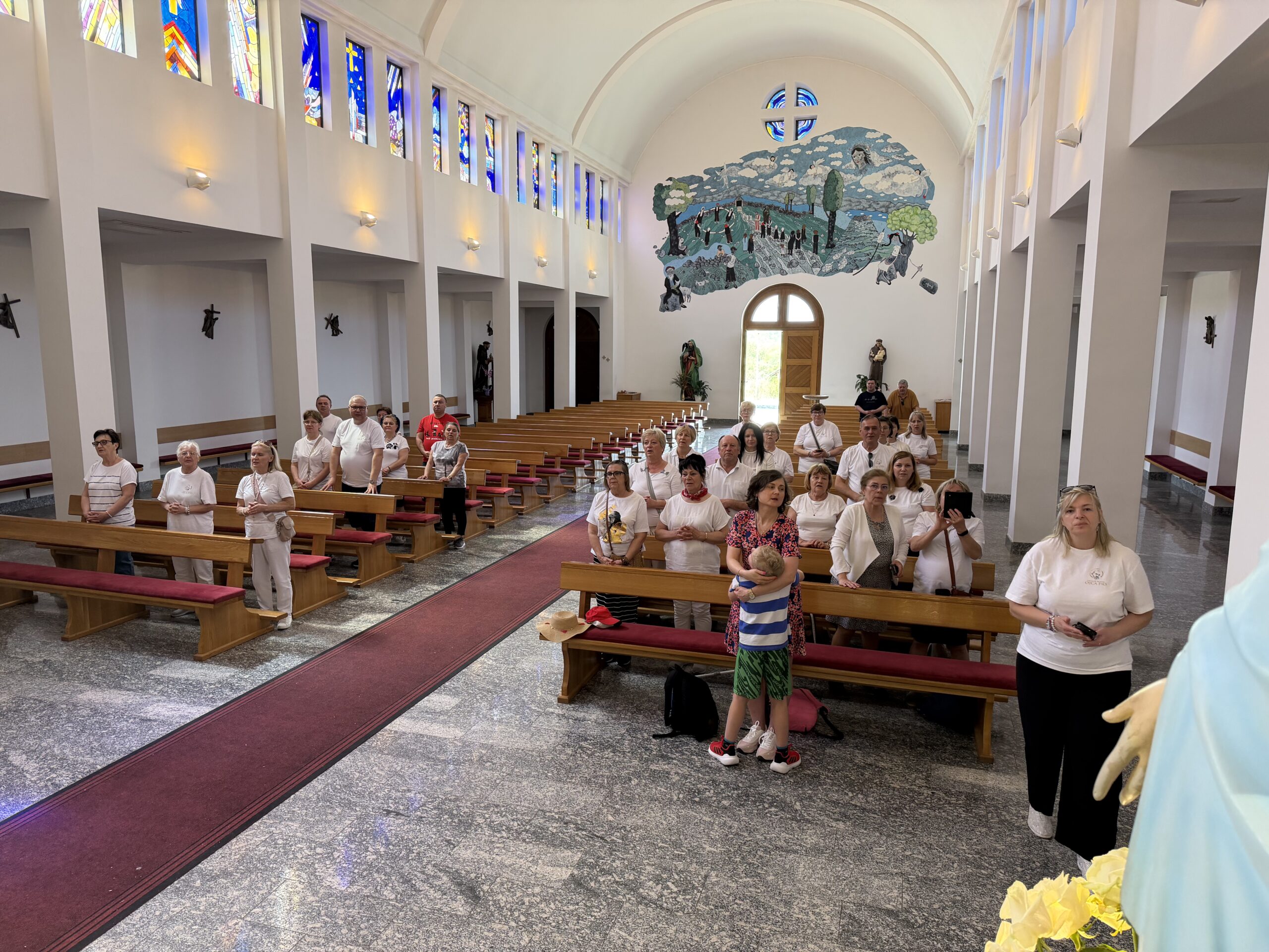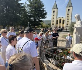 Kolejne dni parafialnej pielgrzymki do Bośni i Hercegowiny mijają nam szybko. Naszym miejscem postoju jest piękny i komfortowy hotel zlokalizowany blisko kościoła pw. Św. Jakuba w Medjugorie. W dniu wczorajszym organizator naszego wyjazdu, właściciel BiuroPielgrzyma.pl, pan Paweł oprowadził nas po Medjugorie. Następnie pojechaliśmy do Tihaljiny, aby sprawować Eucharystię w kościele pw. Niepokalanego Poczęcia Matki Bożej i św. Eliasza, obok figury Niepokalanej, która kojarzona jest jako Matka Boża Medjugorska. Szczególnego charakteru figurze nadają źrenice z niebieskiego kryształu, co powoduje, że odbieramy ją jak żywą postać. W drodze powrotnej odwiedziliśmy też malownicze wodospady. Wieczorną część pielgrzymkowego wyjazdu, jak co dzień stanowiły: różaniec, Msza św. i adroaja Najświętszego Sakramentu w medjugorskiej świątyni prowadzonej przez Ojców Franciszkanów. Pielgrzymi jednogłośnie deklarują, że chociaż wieczorny program modlitewny trwa trzy godziny, czas ten mija niepostrzeżenie.