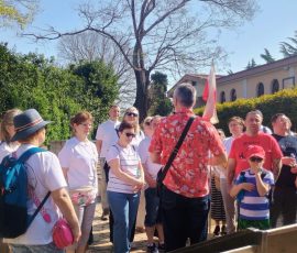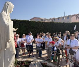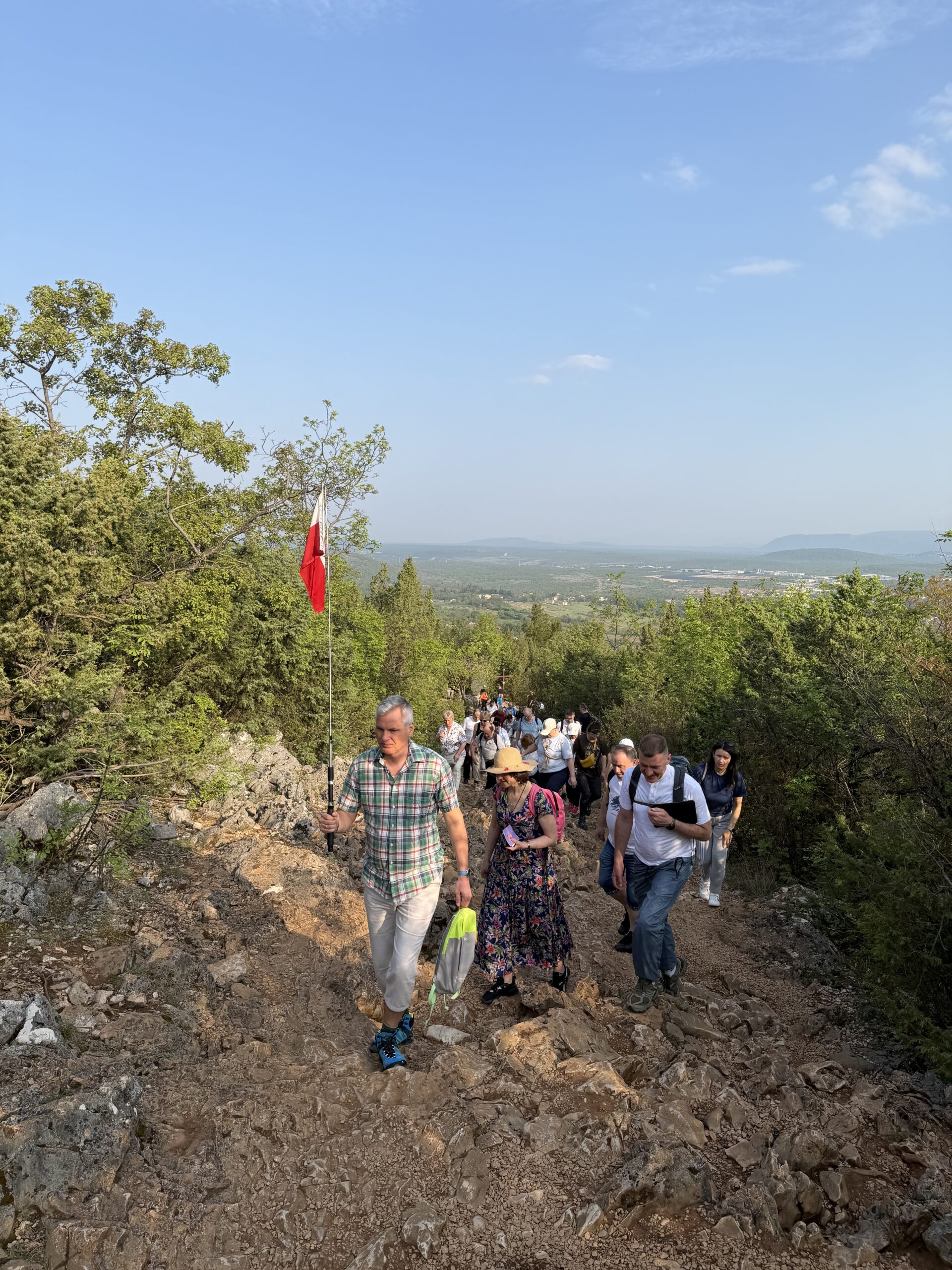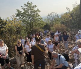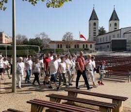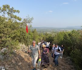 Dzisiejszy, piatkowy program wyjazdu stanowiła współna droga krzyżowa, którą odprawiliśmy wspinając się na Križevac. Brdo Križevac to góra o wysokości 520 m n.p.m., zlokalizowana we wsi Zvirovići około 3 km na południe od Medziugorie. Na jej szczycie 15 marca 1934 odsłonięto betonowy krzyż wysokości 8,56 m, upamiętniający 1900 rocznicę Męki Pańskiej. Kilkugodzinna wspinaczka obok innych, licznych grup pielgrzymów z różnych krajów, przebiegała w atmosferze skupienia i modlitwy. Nie była to droga łatwa, bo przebyliśmy ją nie tylko wspinając się na szczyt góry, ale też w 31 stopniowej temperaturze i opalani przez pięne bośniackie słońce. Po nabożeństwie odbył się też fakultatywny wyjazd do malowniczego i pełnego ducha miejsca – klasztoru derwiszów w Blagaj. est to XV-wieczny dom suficki, który oszałamia lokalizacją – przylega bezpośrednio do wysokiego na 200 metrów klifu, u podnóża którego bije potężne krasowe źródło rzeki Buny. Wieczorny program wypełniony był codzienną modlitwą i budowaniem wspólnoty wiary.