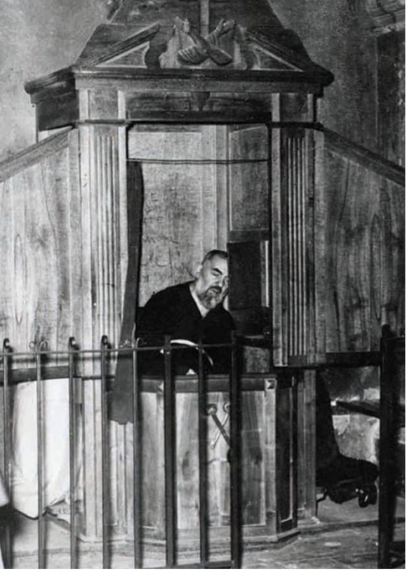 Odprawiana przez Ojca Pio o czwartej lub piątej rano Msza Święta wpłynęła na rozkład autobusów i godziny otwarcia hoteli w San Giovanni Rotondo. Jego sakramentalna posługa przyciągała tysiące wiernych. Ludzie już od 2.30 oczekiwali w kościele. Nawiedzając to miejsce w 1987 roku, Jan Paweł II mówił w homilii poświęconej Ojcu Pio: „Czyż ołtarz i konfesjonał nie były dwoma biegunami jego życia?” Gdy przybył do San Giovanni Rotondo w roku 1974, wspominał: „Mam jeszcze przed oczyma jego postać, jego obecność, jego słowa; widzę, jak odprawiał Mszę św. przy bocznym ołtarzu, a następnie ten konfesjonał, dokąd udawał się, aby spowiadać… ”.